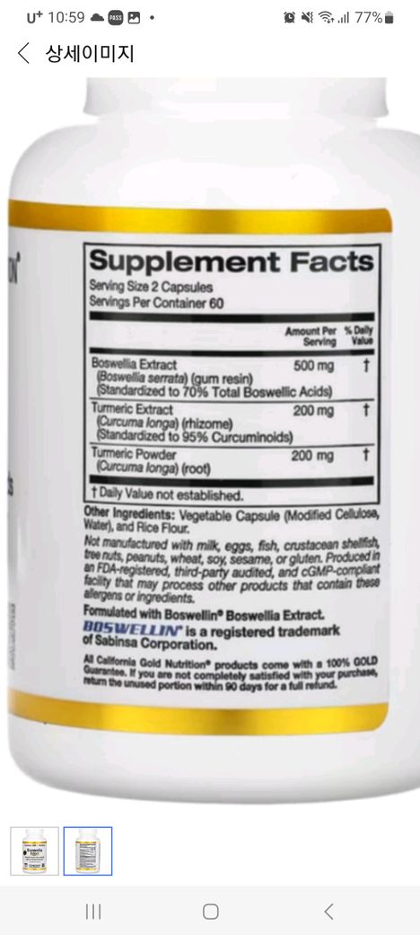 보스웰리아 성분의 영양제도 추가로 같이 복용이 가능합니다