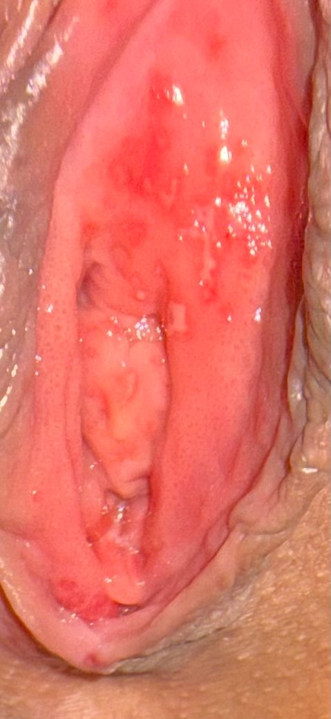 안녕하세요. 성관계 후 일주일정도 지났는데, 불편한 질 분비물 증가 및 배뇨시 따가움, 작열감으로 산부인과 내원하여 균검사 및 헤르페스 혈액검사 진행한 상태이고 현재 질정제와 칸지다질염 약 먹고 있습니다. 질염은 확실하나 헤르페스는 당시 육안으로 아래 사진처럼 하얗게 일어나진 않았던지 가능성 여부만 확인해보자고 검사했는데, 병원 다녀온지 이틀 후인 오늘 질 상태가 위와 같네요.
