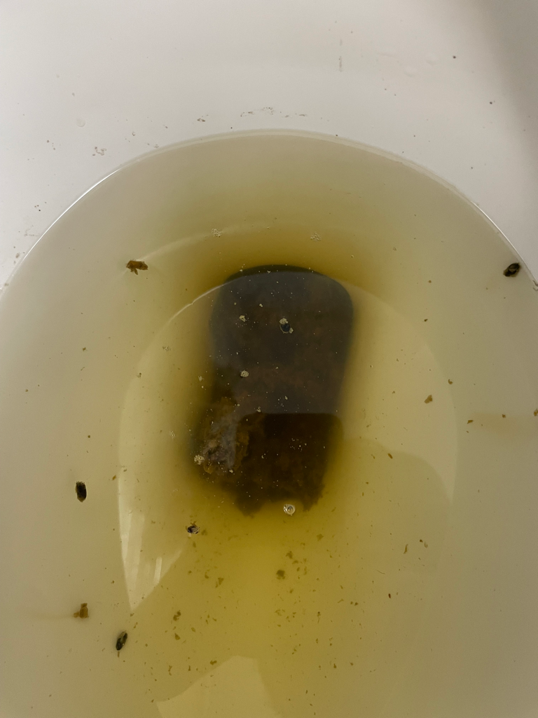 사진의 대변은 흑색변이 아닙니다. 먹은 음식 중 검은색의 무언가가 있었을 뿐 정상변에 가깝습니다. 변 색깔때문에 염려치 않으셔도 괜찮습니다.
