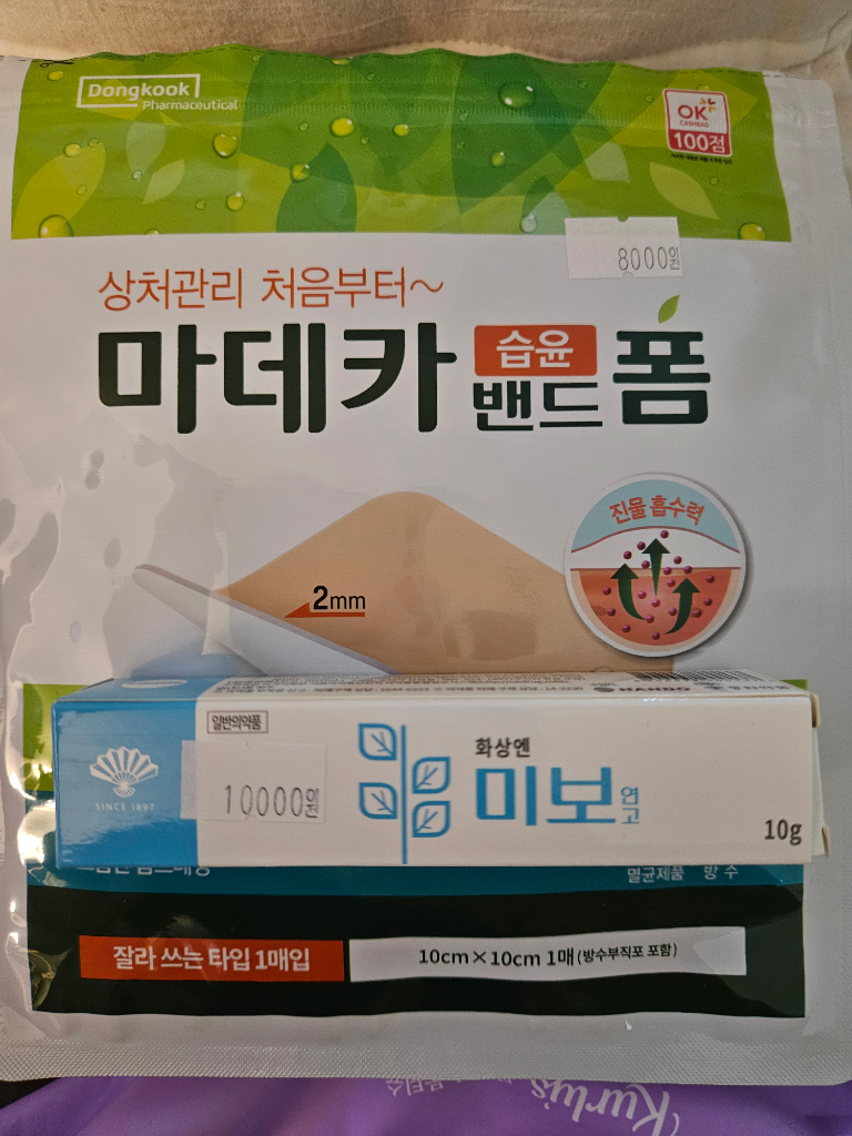 처방받은 약을 먹으면서 미보연고를 바르고 그 위에 습윤밴드를 붙이셔도 괜찮아요.