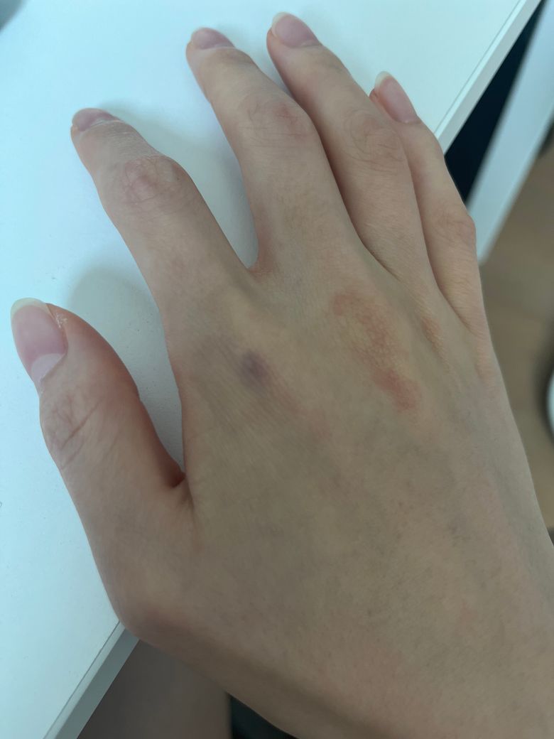 사진처럼 저렇게 됐어요. 멍든 곳 누르면 아파야하는데 아프지도 않아요. 혹시 무슨 증상이나 원인이 있는지 아실까요.. 이런적은 처음이라 조금 당황스러워요