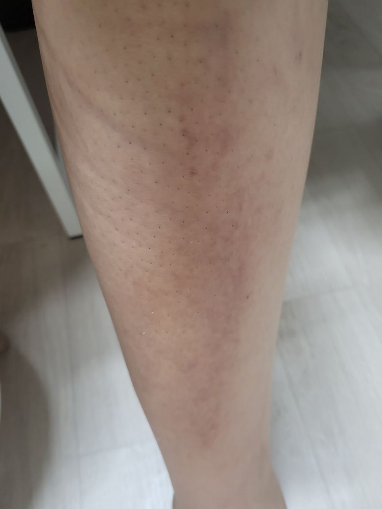 정강이 부위가 가려워서 긁다가 봤더니 착색이 되어있네요.