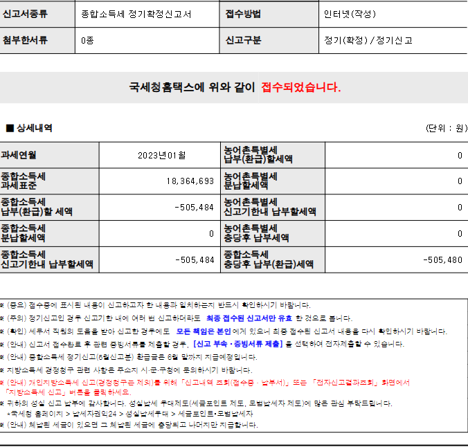 홈텍스 들어가서 해봤는데 접수증에는 -505,484원뜨고 신고서 미리보기?에는 맨아래에 결정세액에 612,574원뜨고 뭐 어떻게보는거에요?? 제대로 한게맞나도 모르겠고 ㅠㅠ 알려주세요~~~