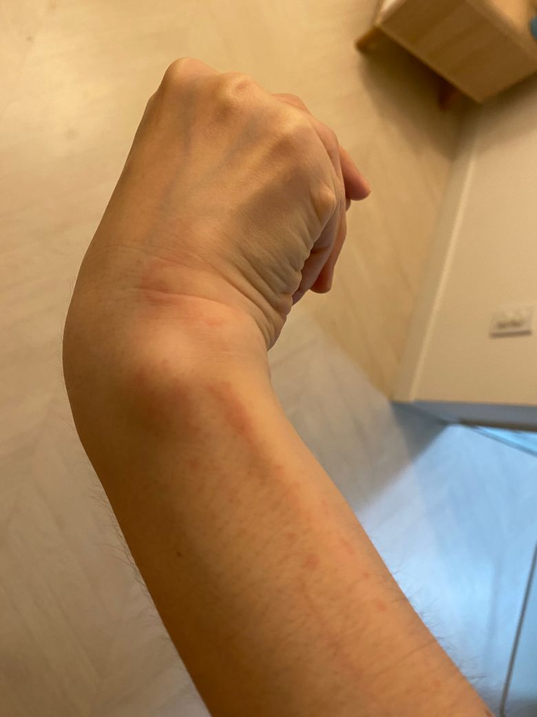 2,3은 자극되면 부어오르며 더 가려워지는 모습이고요 - 손등 손목 손가락 팔에서 발등 발목 발바다 발옆 등이 주로 매우 가려워요