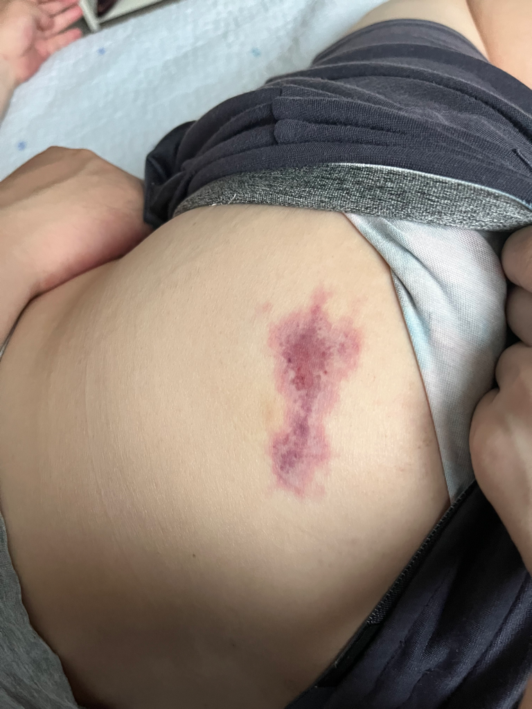 주사맞은 부위가 아프더니 그 뒤로 멍이 들었습니다