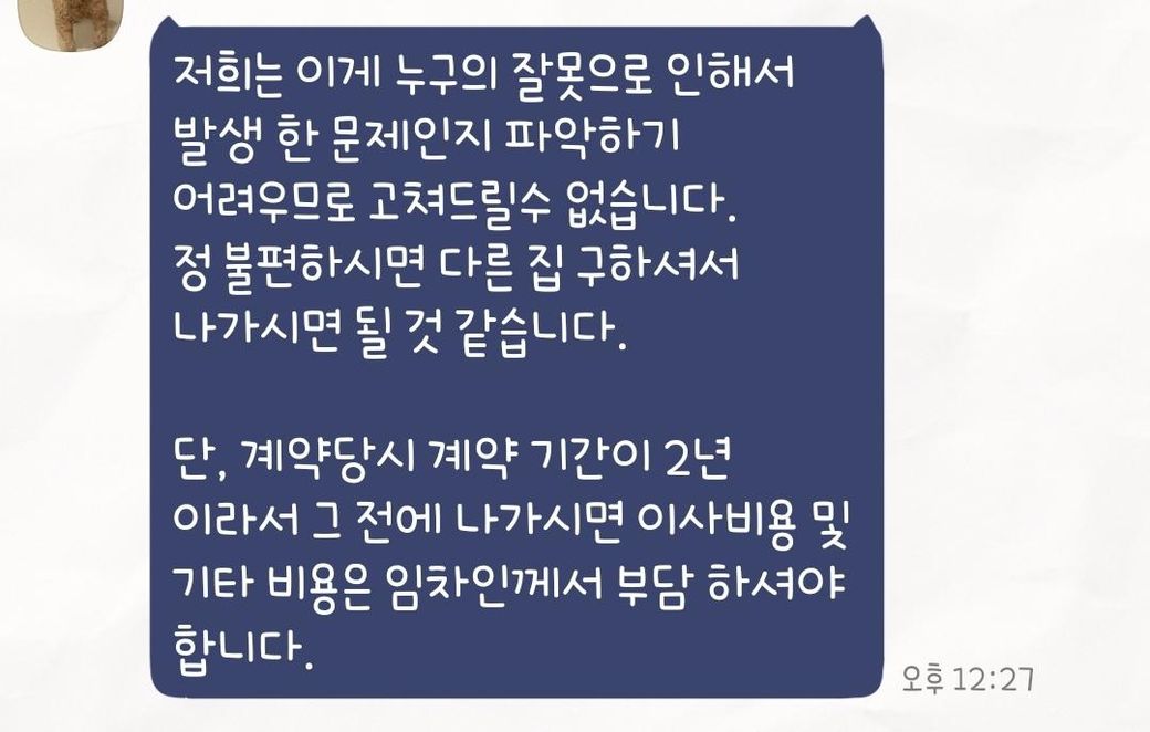 임대인이 수리를 거부하여 생활에 불편함이 있다면, 계약 해지를 요구할 수 있습니다.