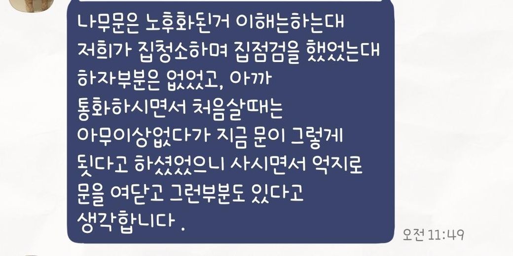 노후화로 베란다문 고장을 집주인이 인정하면서도 수리를 못해준다네요