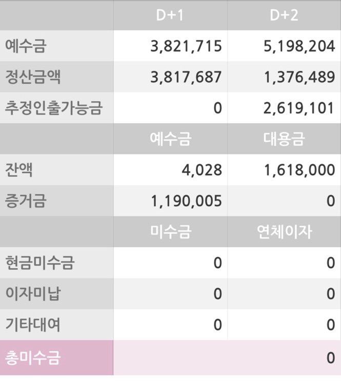 따라서 D+2일에 인출금이 님께서 현금화할수 있는 금액입니다