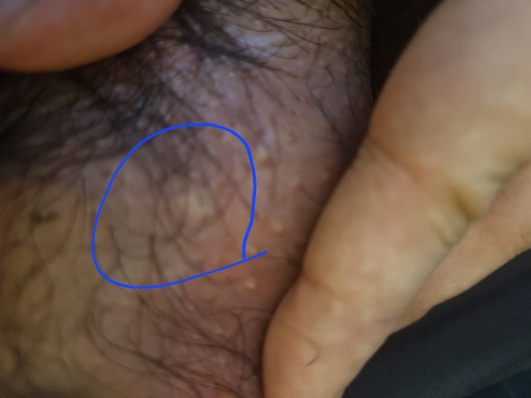 사진만 봐서는 정확한 판단은 어렵지만 모낭염이라고 판단하기는 어렵습니다. 피지가 뭉쳐서 하얗게 보이는 것 같습니다. 정확한 판단을 위해서는 비뇨기과나 피부과에 가보시는 것을 권유드립니다.