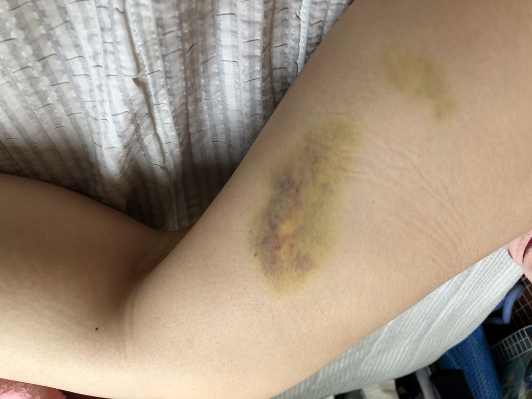 오늘은 정강이쪽에도 푸른 멍이 새로 생겼어요