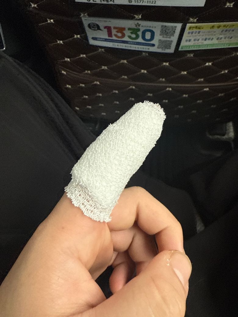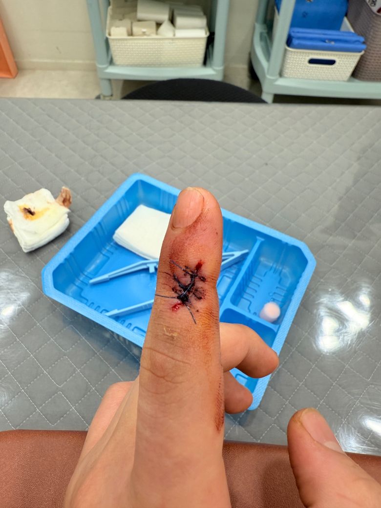 칼질하다가 살이 아예 날라갔는데 이거 잘 꼬매진거 맞나요?
