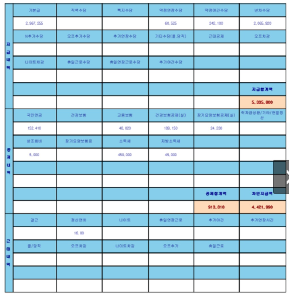 이게 23년 10월, 11월, 12월 급여 명세서구요