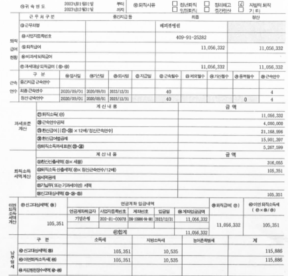 그리고 1월 12일 퇴직금을 받았는데 명세서를 안보내줘서