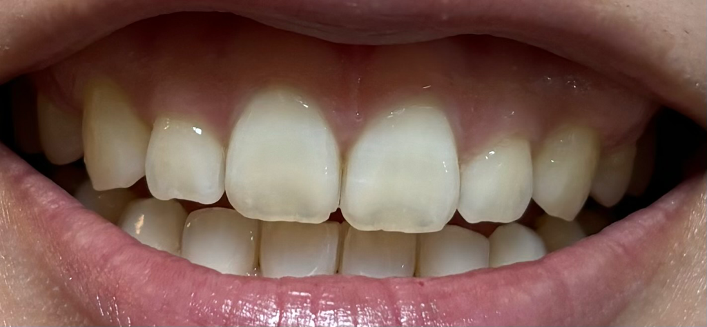 초기충치, 반점치의 양상입니다 꼭 치료가 필요하진 않은 상태로 여겨지나 치과에서 검진을 한번 받아보시면 좋을 것 같습니다