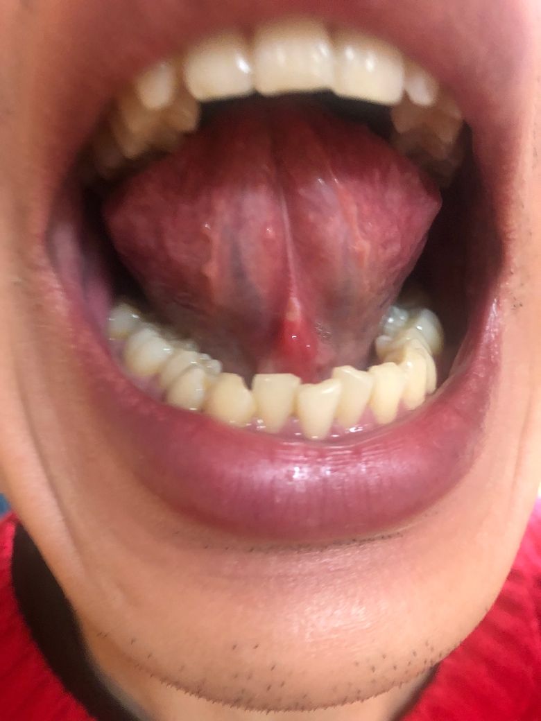 제 이미지 올릴게요 설소대에 찢어진다거나 출혈이 있다던지 이런 이상이 있는지 봐주시고 통증 없어지는 방법도 알려주세요 탄툼 가글 있습니다.