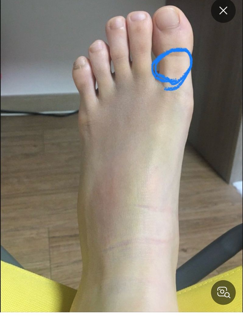 어제 만 보 정도 약간 불편함 신발을 신고 걸었습니다. 어제 오후부터 통증이 느껴지더니 오늘까지 계속 해서 엄지발가락에 통증이 느껴집니다. 사진에 표시한 부분 뼈가 아파요ㅠㅠ
