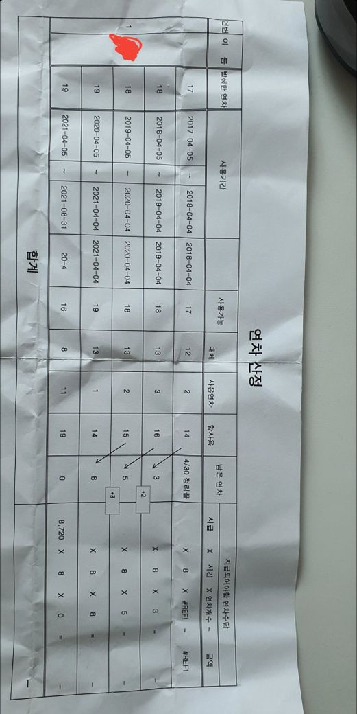 퇴사를 앞두고 연차문제로 분쟁이 발생해서 경리에게 연차산정 출력해달라해서 받았네요