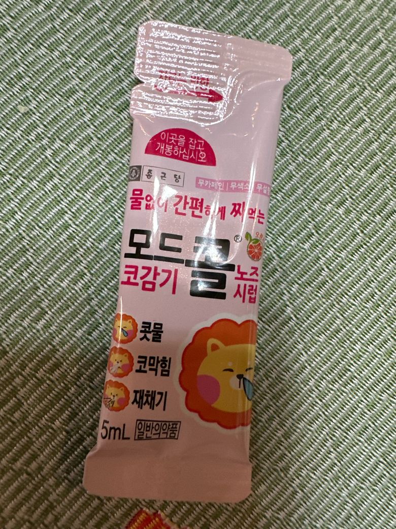 아이가 코가 막혀서 불편해하는 경우에는 추가로 모드콜 노즈시럽이랑 함께 복용해도 괜찮습니다.