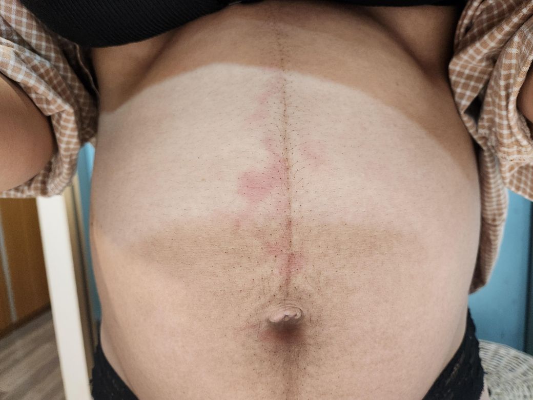 이후 배가 쓰라리듯 아프고 저렇게 빨갛게 올라와있고