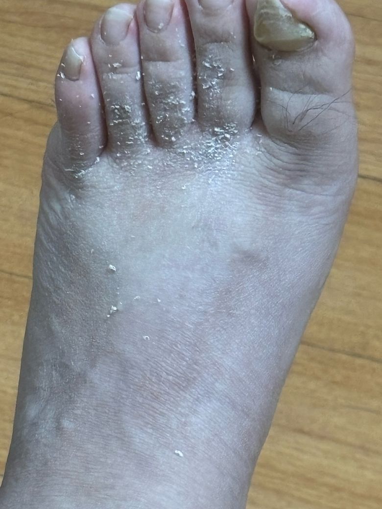 발에서 뭐가 하얗게 일어나는데…. ㅠㅠㅠㅠ