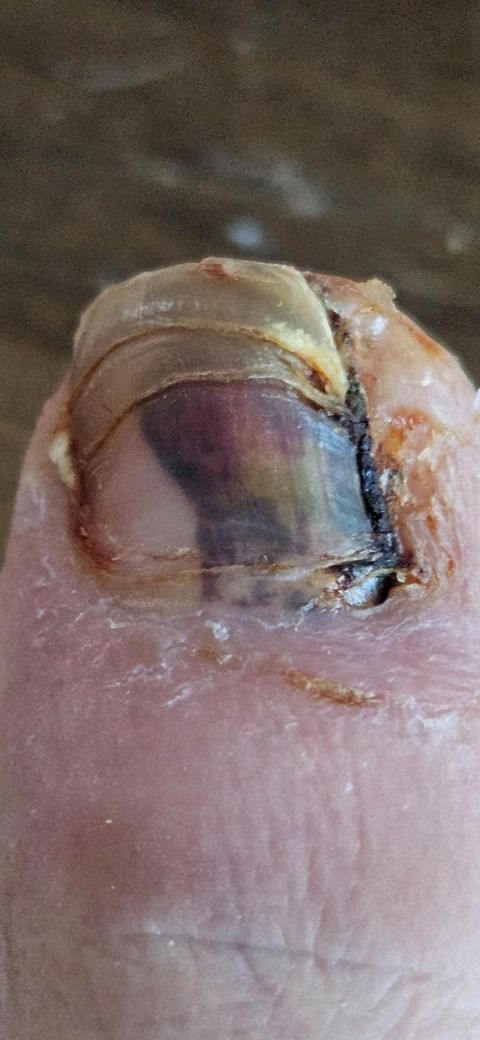 우선 현재로썬 수술 병원에 내원하셔서 출혈이 있었던 부분과 발톱이 갈라진 부분에 대한 적절한 조치를 받으시길 바랍니다.
