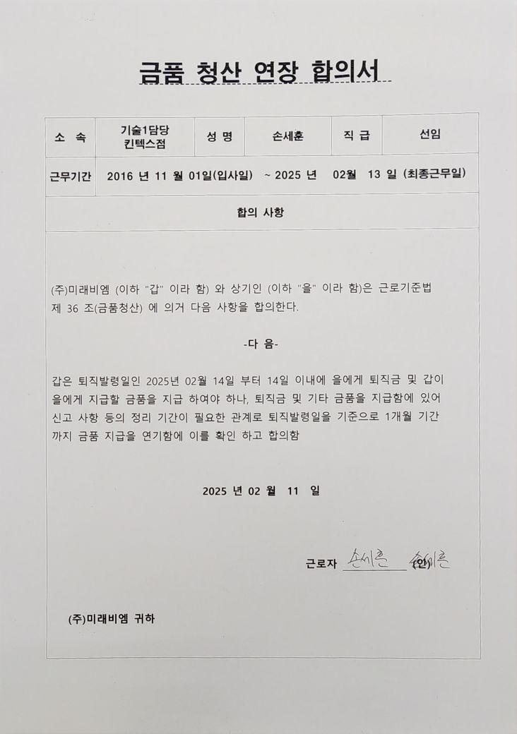 네 기일연장에 대해 합의를 하였어도 질문자님 퇴사일 기준 14일 이후부터의 일수에 대해서는 지연이자 20%가