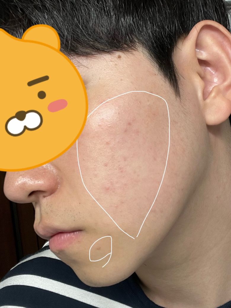 사진에서 보이는 것 처럼 양쪽볼에 붉은 자국들이 있는데 몇달째 사라지지 않아서 질문드립니다
