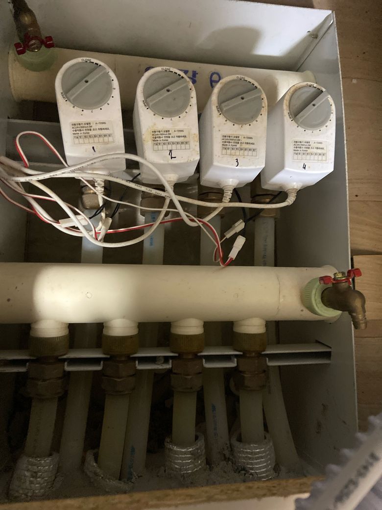 그리고 조절기 같은게 달려있는데 저기 연결된 배관에는 온기가 없고 다른쪽 4가닥만 온기가 있어요 원래 그런건가요?