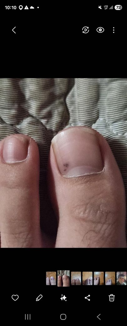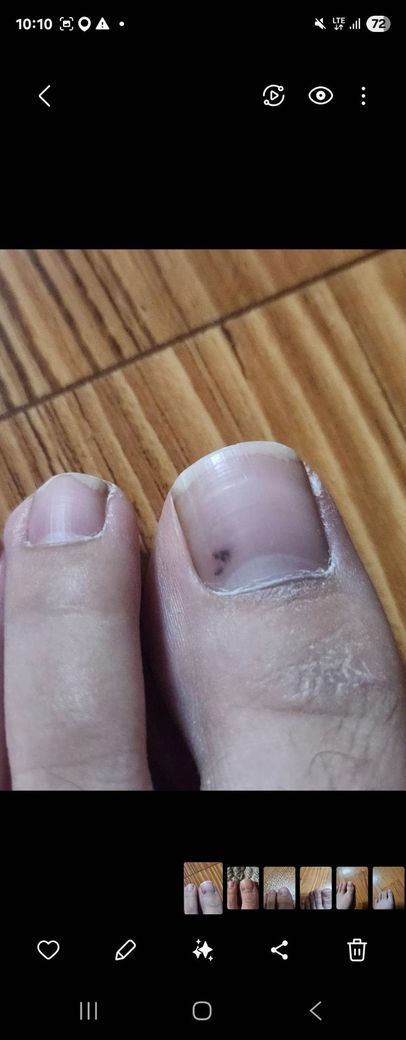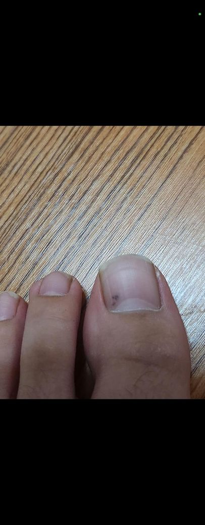 1월20일에 롯데월드를 갔다오고부터 이 점이 생겼습니다.그때 발이 엄청 아팠습니다.제 나이는 13살입니다.지난 3일동안 발톱에 있는 점의 사진을 찍으며 관찰했는데 기분탓인진 모르겠는데 발톱의 점이 점점 진해지는 것 같았습니다.사진은 왼쪽부터 각각 8일,9일,10일에 찍었던 사진입니다. 찾아보니 발톱의 점이 진해진다면 흑색종일수도 있다고 했는데 진짜 흑색종 일까요..?