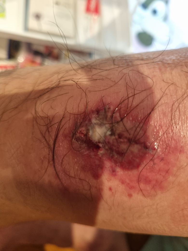 어제 빗길에 넘어져 다쳤던 글 올렸던 사람 입니다. 하루 지나고 오늘 샤워후에 소독 하고 드레싱 바꾸려 하니까 살점이 붙어있고 크게 사진처럼 하얀 뭔가가 있는데 고통은 어제보다는 덜 하지만 상처가 치료가 되는 중인가요? 아니면 더 심해지는 중인가요?