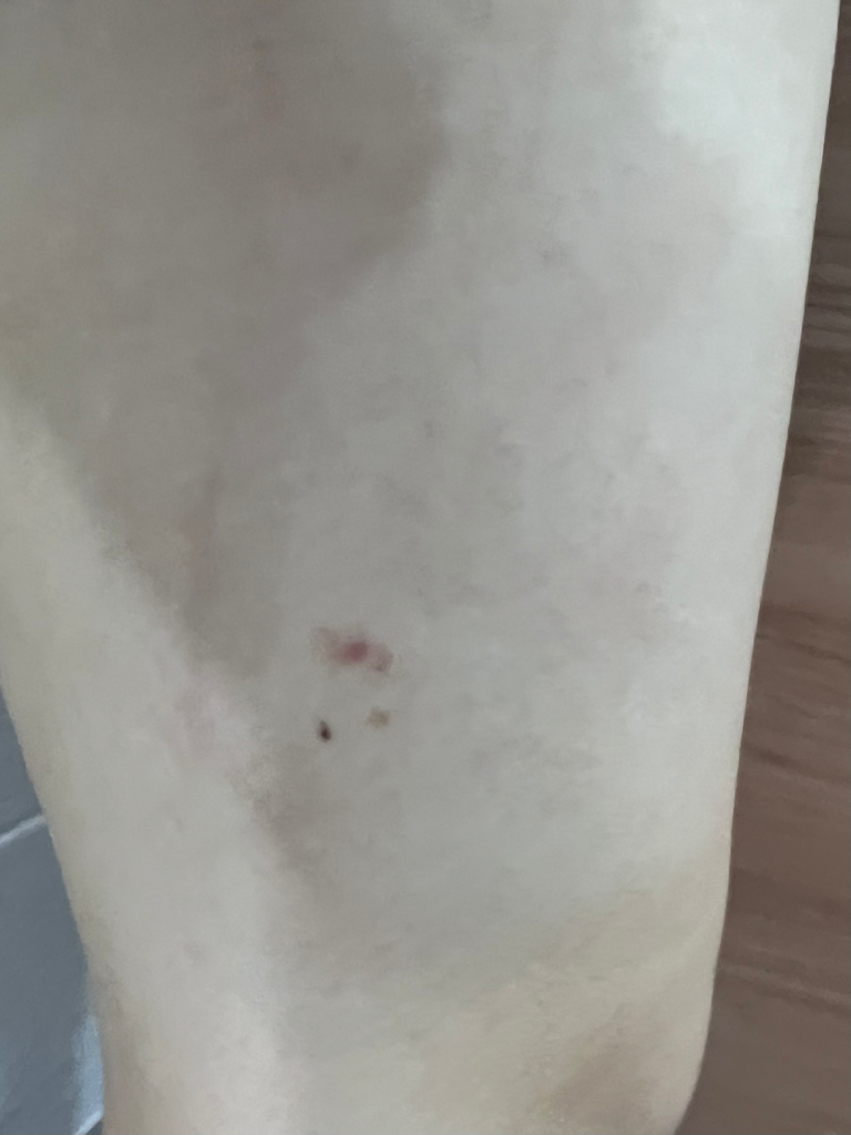 사진의 소견만 보고 모기에 의한 물림인지, 다른 벌레나 원인에 의한 것인지 감별 가능하지 않습니다. 원인을 파악하긴 어렵지만 연고 바르고 관리를 잘 해주면 스스로 좋아질 가능성이 높아 보이는 소견이긴 합니다.