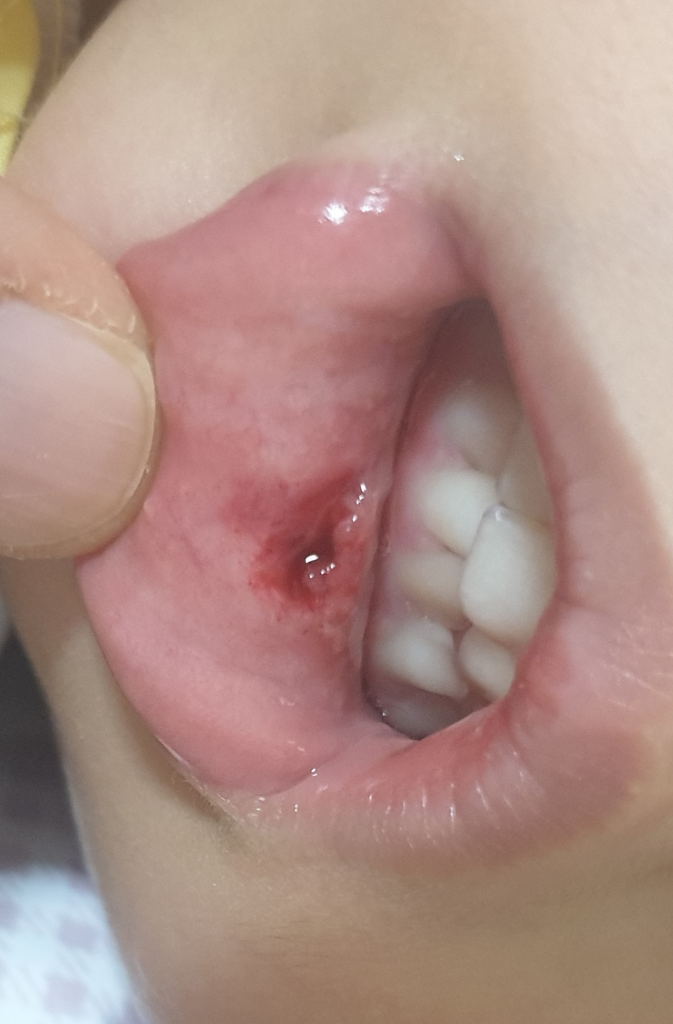 소아과에서는 해당 상처에 대한 적절한 치료를 받으실 수 없습니다. 점막 부위이기 때문에 딱히 특별한 치료 없이도 회복될 가능성이 높습니다. 그렇지만 혹시 모르기 때문에 응급의료센터나 성형외과 등 병원에서 상태 평가를 한 번 확실하게 받아보시는 것이 좋겠습니다.