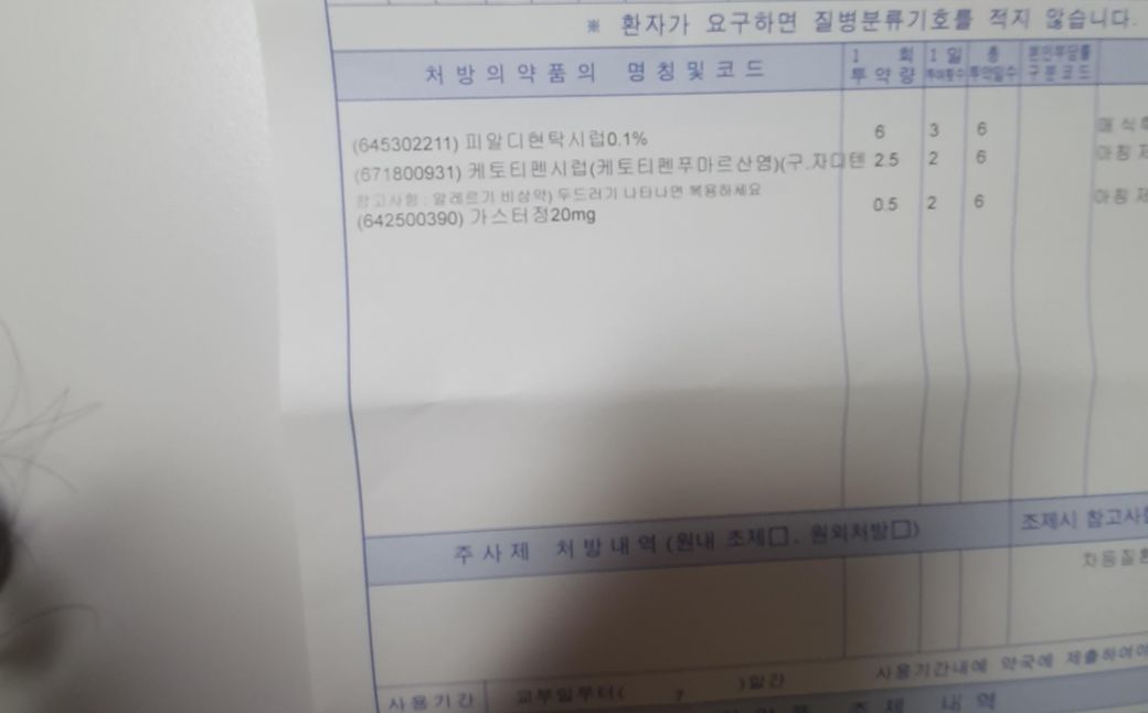 감기약과 피부과약은 같이 사용하셔도 되나 현재 감기약에 항히스타민제가 두가지 종류가 들어있습니다. 때문에 사용하시게된다면 케토티펜 시럽은 빼고 사용해보시는걸 권해드립니다.