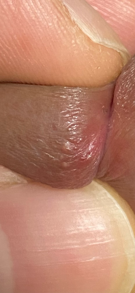 학창시절부터 있었던 뾰루지 같은 돌기는 헤르페스일 가능성이 낮습니다. 헤르페스는 한 번 감염되면 평생 바이러스가 몸 안에 남아 있게 되므로, 1mm 이하의 돌기가 학창시절부터 있었던 경우 헤르페스는 아닐 가능성이 높습니다. 또한, 헤르페스가 터지면 진물이 나오기는 하지만 흉터는 남지 않습니다. 따라서, 학창시절부터 있었던 뾰루지 같은 돌기는 헤르페스가 아닐 가능성이 높습니다.