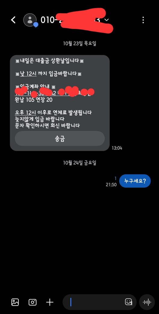 난데없이 개인돈 상환독촉문자가 왔어요.