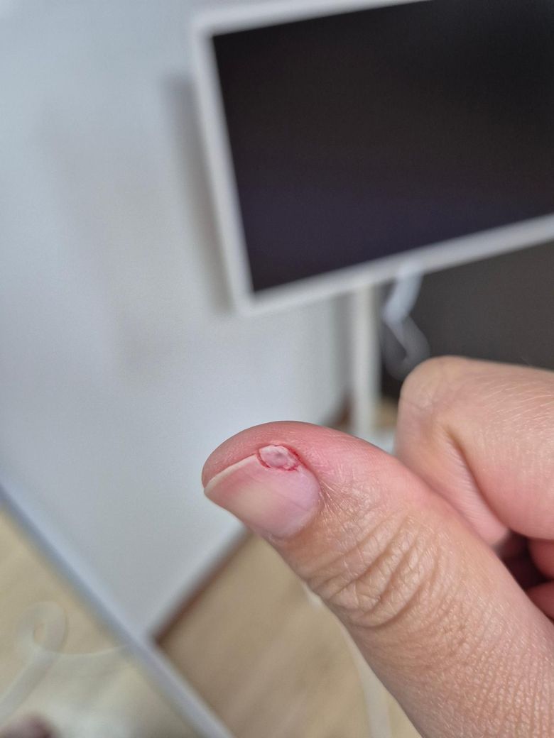 엄지손톱 오른쪽이 들리면서 부러졌습니다