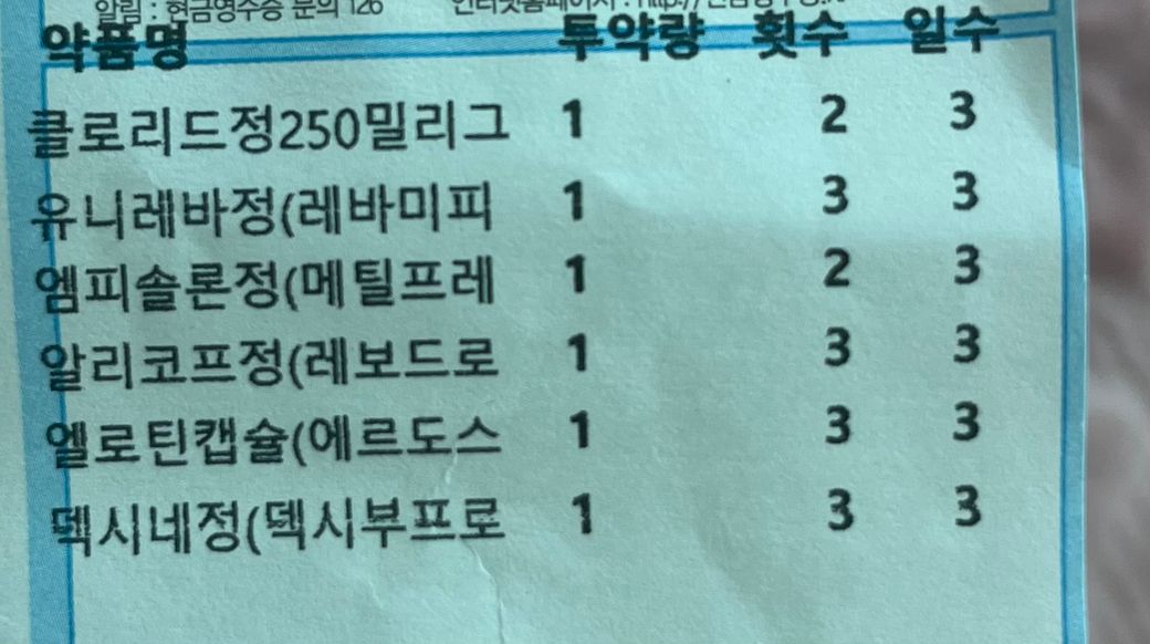 사진으로 보여주신 약들에 저녁에만 레티린정을 1알,