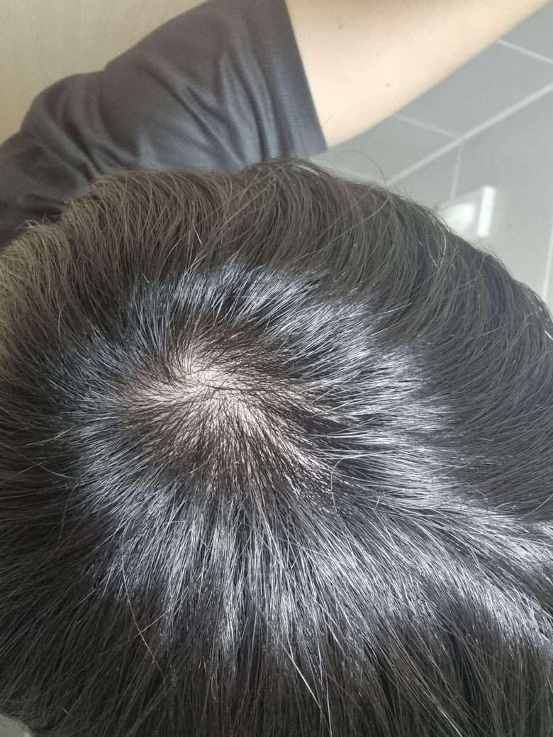 정수리를 찍어보니 살짝 비어보이는 느낌인데 원래는 어땠는지 확인을 하지 않아서 잘 모르겠네요