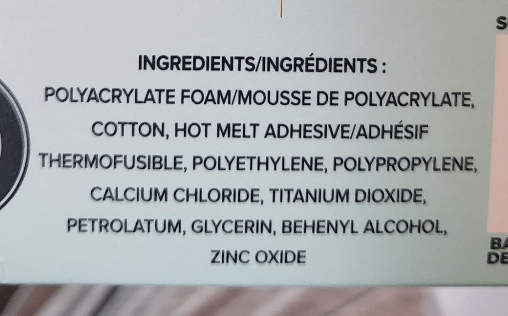 Zinc Oxide: 피부 보호 및 진정 효과가 있어 생리대에서 자주 사용됩니다. 기저귀 발진 크림 등에서도 흔히 볼 수 있는 성분입니다.