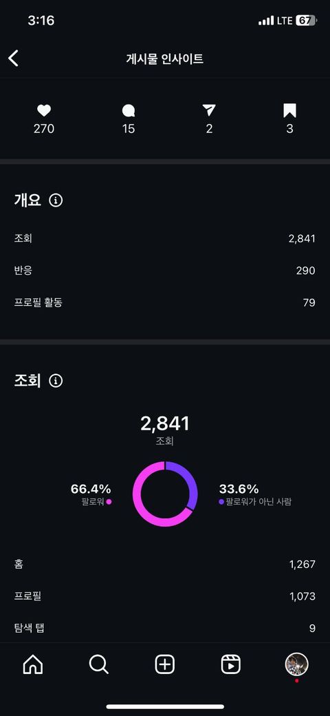 제일 궁금한건 지금 제 게시물,릴스가 정상적인건지.. 앞으로 좀 더 자주올리면 가능성이 있는건지 궁금합니다. 5월부터 좀 자주올리기 시작해서요(원래는 한달에 한번 게시물만)