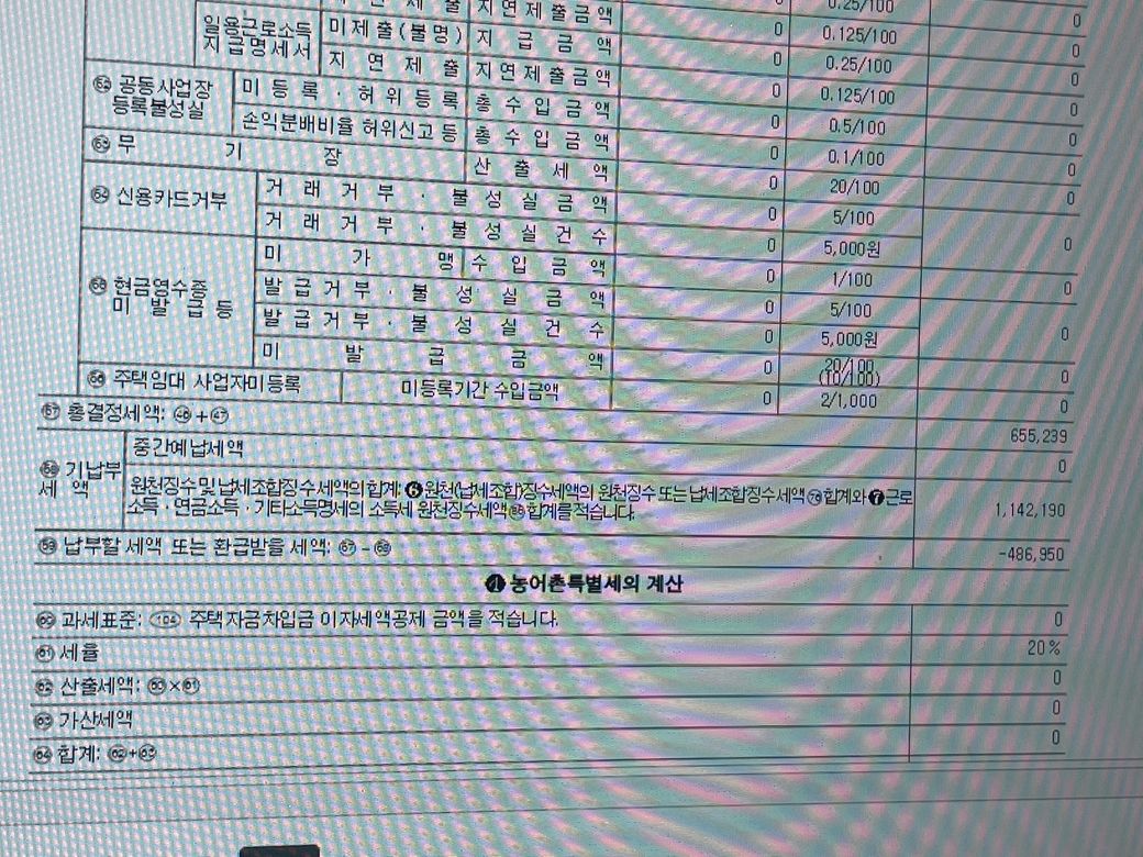 2번째 사진에 납부할 세액이 (-) 금액이면 환급을 받으시게 됩니다