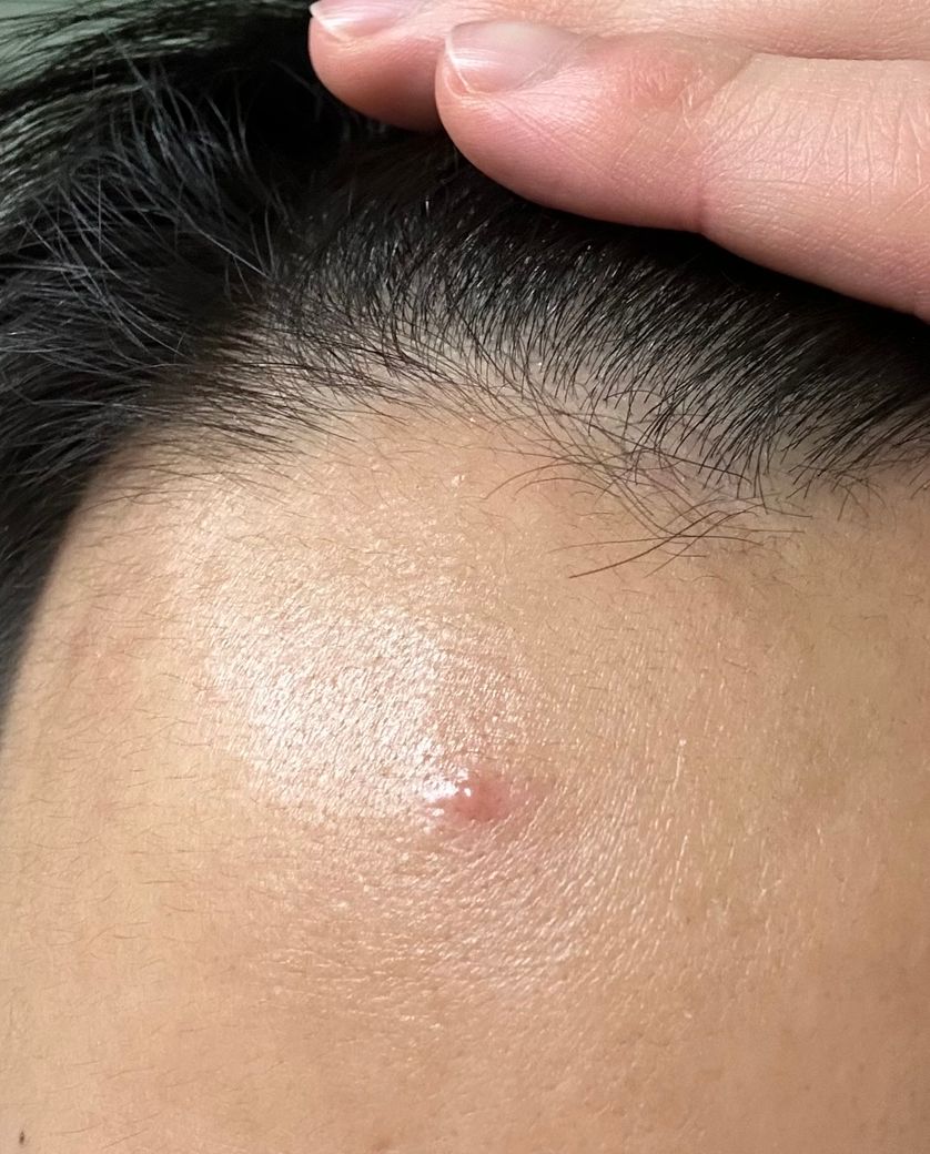 흉터가 아문지는 두세달정도 지났고, 꾸준히 흉터연고도 발라주며 관리하고 있었는데 요 며칠 사이 흉터 끝부분이 조금씩 알맹이가 민져지더니 이렇게 알갱이같이 무언가가 올라왔습니다.