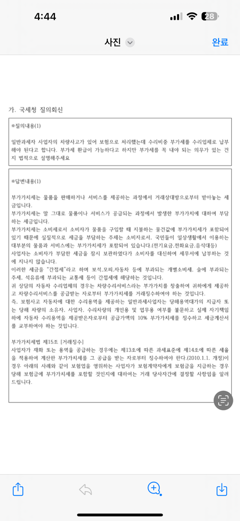 사업자는 차량 수리 보험처리 받아도 부가가치세 납부해야하나요?