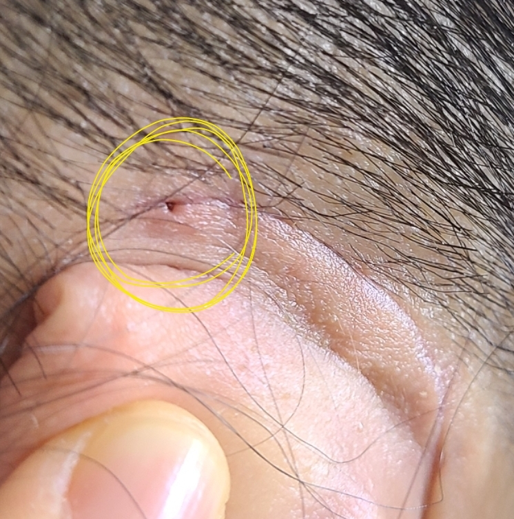 수술한지는 이제 한달이 되어가는데 다 아물었지만 이쪽만 조금 이상하네요? 만지면 피딱지같은 딱딱함이 느껴지는데 안쪽에 있어서 떼어지지도 않아요.