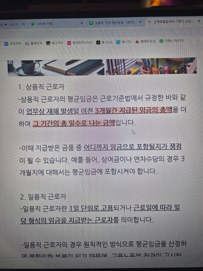 - 상용직 근로자는 업무상 재해 발생일 이전 3개월간 지급된 임금의 총액에 그 기간을 일수로 나눈 금액이라고 알고있는데