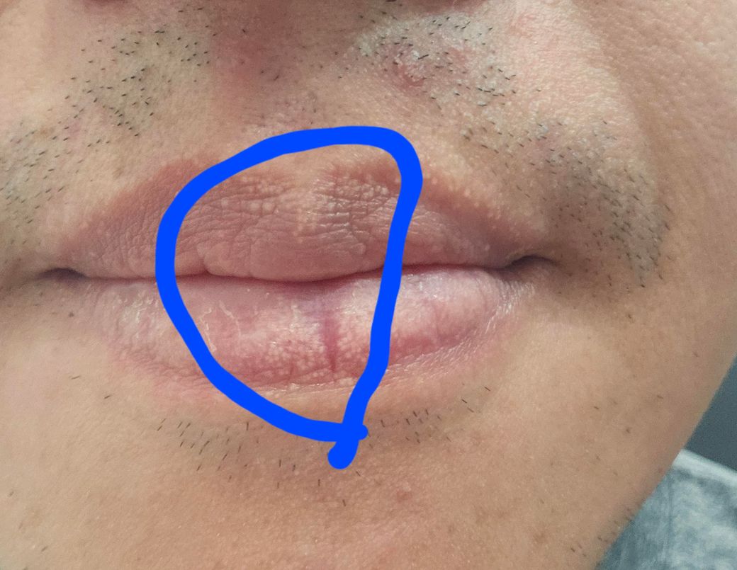 입술에 사진처럼 하얀 반점이 생기는 경우