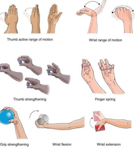 가벼운 덤벨등을 이용해 전완근 강화운동을 해주시는게 무엇보다 중요하며 팔을 테이블 위에 두고 손목만 올렸다 내렸다하는 강화운동을 해보시면 좋을 것 같습니다.
