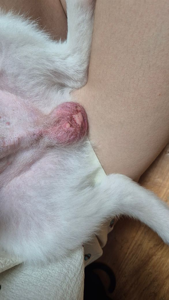 안녕하세요. 박창민 수의사입니다. 사진으로 판단할 수는 없지만, 집에서 치료할 수 있는 단계는 아닌 거 같습니다. 가능하면 소독만 해주시고 동물 병원에 가실 때까지 넥카라를 씌우시는 게 좋을 듯 합니다. 감사합니다.