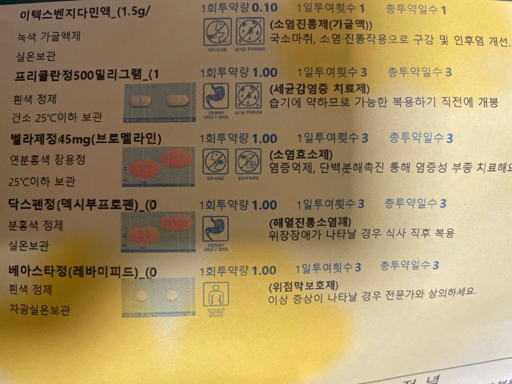 현재 처방받은 약 복용중입니다.