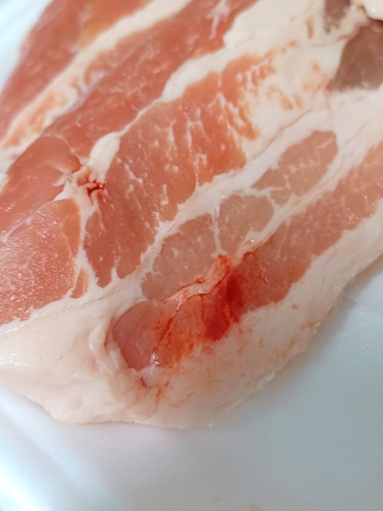 안녕하세요. 피가 묻어 있는 삼겹살을 그냥 구워서 먹는 것은 권장하지 않습니다. 피가 묻어있는 고기는 세균이나 병원균이 있을 수 있기 때문에 완전하게 섭취하기 위해서는 다음과 같은 단계를 따르는 것이 좋습니다. 삼겹살을 깨끗한 물로 충분히 세척하여 피와 불순물을 제거하는 것이 좋습니다.